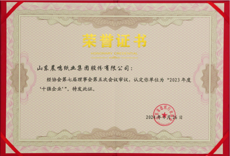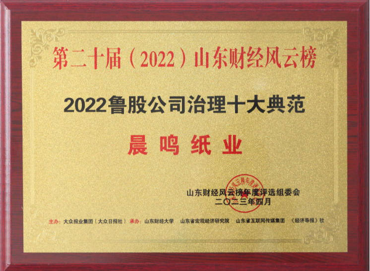 半個(gè)多世紀(jì)的探索和發(fā)展,讓晨鳴集團(tuán)榮譽(yù)滿冠。晨鳴先后榮獲中國(guó)企業(yè)500強(qiáng)、中國(guó)制造業(yè)500強(qiáng)、輕工業(yè)全國(guó)十佳企業(yè)、中國(guó)出口名牌、全國(guó)五一勞動(dòng)獎(jiǎng)狀、中國(guó)企業(yè)管理杰出貢獻(xiàn)獎(jiǎng)、全國(guó)生態(tài)文明建設(shè)十大新聞人物、全國(guó)精神文明建設(shè)先進(jìn)單位、中國(guó)造紙工業(yè)環(huán)境友好企業(yè)、中國(guó)企業(yè)集團(tuán)納稅五百?gòu)?qiáng)、中國(guó)工業(yè)行業(yè)排頭兵企業(yè)、全國(guó)造紙行業(yè)勞動(dòng)關(guān)系和諧企業(yè)、山東省循環(huán)經(jīng)濟(jì)示范單位、低碳山東標(biāo)桿企業(yè)等多項(xiàng)榮譽(yù)稱號(hào)。