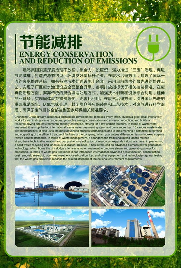 晨鳴集團堅定不移地走科技含量高、資源消耗低、環境污染少的新型工業化道路,大力實施綠色低碳戰略,努力做到經濟建設與生態建設一起推進,經濟競爭力與環境競爭力一起提升,物質文明與生態文明一起發展,在保護環境中謀求發展,在科學發展中提高環保水平,實現經濟效益與環境效益的“雙贏”。
