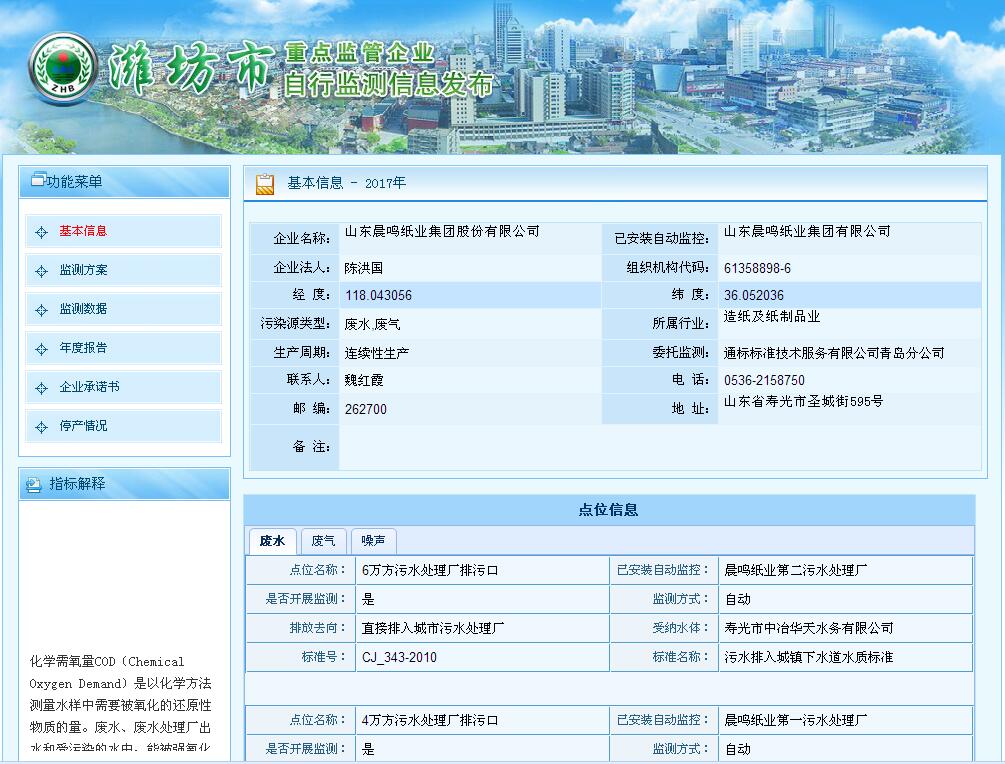 山東晨鳴紙業集團廢水、廢氣自測公示161205