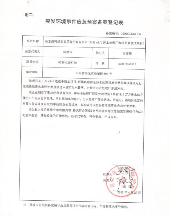 山東晨鳴紙業集團環境信息公開